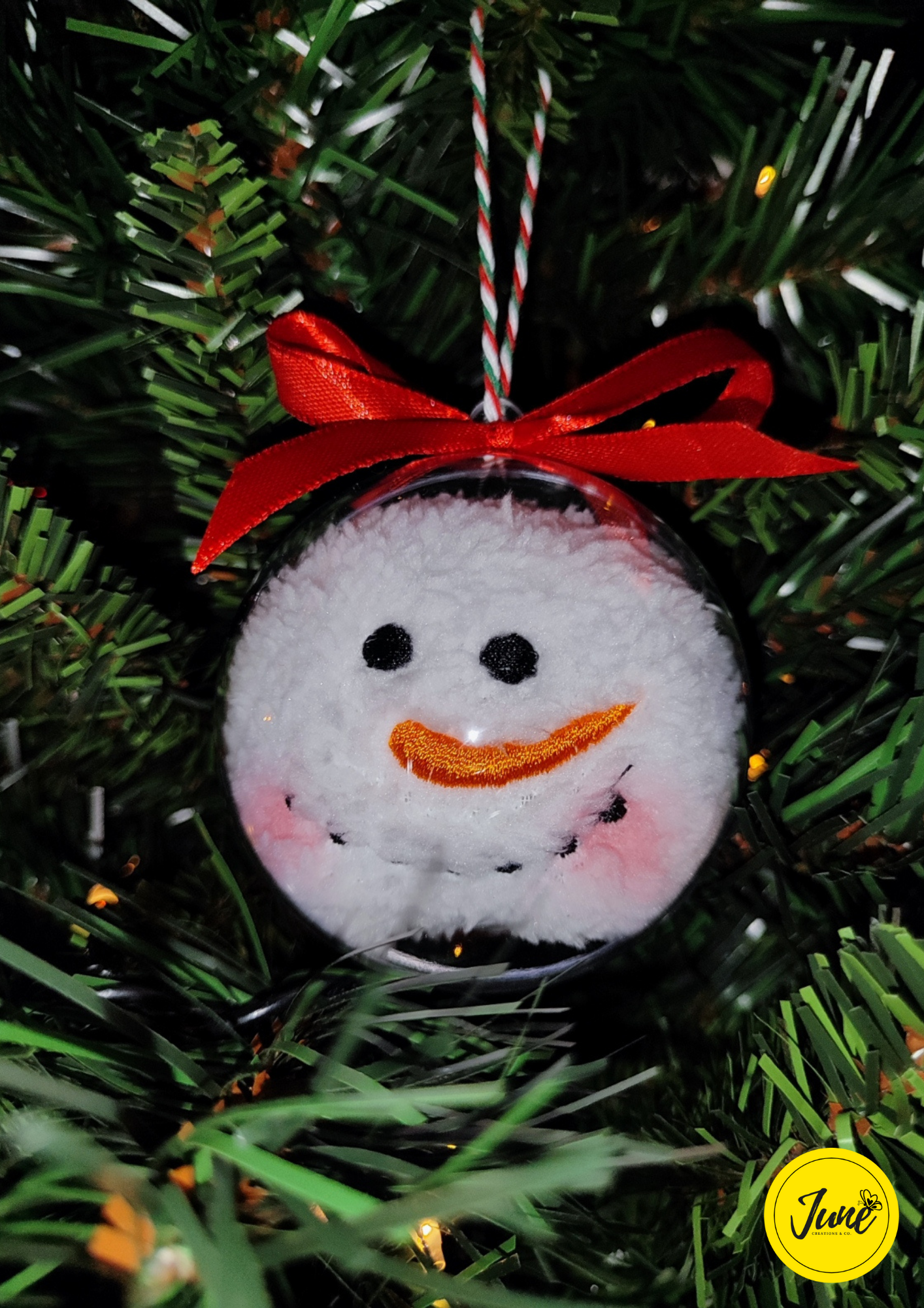 It is an 8cm diameter ball bauble with a plush of a Snowman head. You can personalise with your own message on the back of it. The message can be "Happy Christmas", "Il-Milied it-Tajjeb!", "Xewqat sbieħ!", etc.